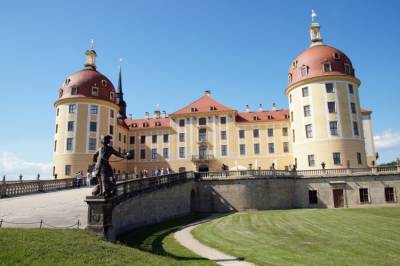 Der Besuch von Schloss Moritzburg, 17 km nördlich von Dresdens Zentrum gelegen, bildete den Auftakt der eindrucksvoll vielseitigen Tour. Nach der stundenlangen Busfahrt tat es gut, sich ein bisschen die Beine zu vertreten und durch das imposante Gebäude mit den vier Rundtürmen zu laufen. Viele kennen die märchenhafte Schlosskulisse aus dem hier gedrehten Film „Drei Haselnüsse für Aschenbrödel“. Die Prunksäle spiegeln die barocke Wohnkultur aus der Zeit von König August dem Starken. Wahre Kostbarkeiten sind die vergoldeten Ledertapeten aus dem 17. Jahrhundert. Staunen kann man hier auch über die größte Jagdtrophäen-Sammlung Europas. Die Rothirschgeweihe gelten als die bedeutendsten der Welt.